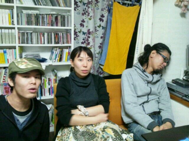 池袋で飲んでいたので、私とちっぽんさんは終電関係なかったのですが、小岩りのちと国分寺吉川さんは楽しい時間と引き換えに終電をなくし、では二人ともうちにかこーい!!と、なっていたところへ、飲んでいたお店でバイトをしているびっきーが登場。
