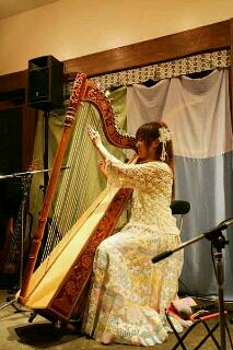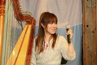 アルパ(ラテンハープ)奏者の通称『姫』神山さん。