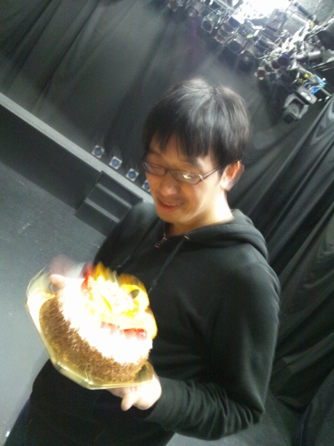 みんなで散々打合せし、さかっきーさんが降りて来たら入り口にいるてらさんが暗転し、誘導灯に導かれてロウソクのついたケーキまでご案内する。