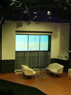 セットのベランダがスクリーンになっていて、舞台の裏からで東雲の風景をプロジェクターで写しているのです!